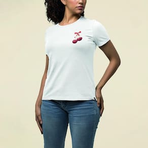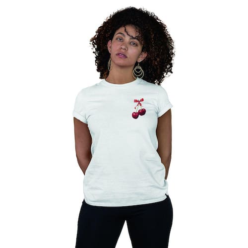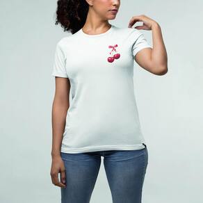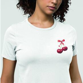 Camiseta Feminina Baby Look Cereja Estampa Minimalista