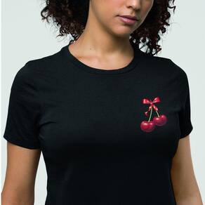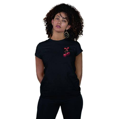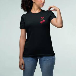 Camiseta Feminina Baby Look Cereja Estampa Minimalista