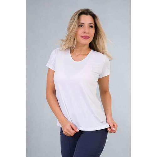 Camiseta Feminina T-shirt para atividades físicas, academia, pilates, crossfit, corrida. Modelagem ajustada no corpo, marcando silhueta com ótimo conforto e respirabilidade.