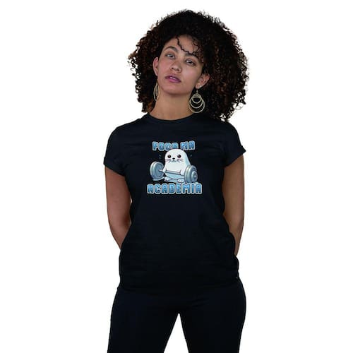 Camiseta Feminina Foca Na Academia Fitness Corrida Caminhar - Preto - GG