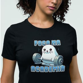 Esta camiseta é para os verdadeiros 'focados'! Com uma foca fazendo academia e a frase 'Foca na academia', você adiciona uma dose extra de motivação e humor ao seu treino. Mergulhe de cabeça no seu estilo de vida fitness com um toque de duplo sentido.