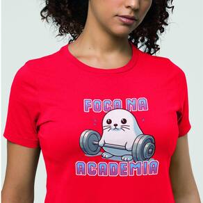 Camiseta Feminina Foca Na Academia Fitness Corrida Caminhar - Vermelho - G