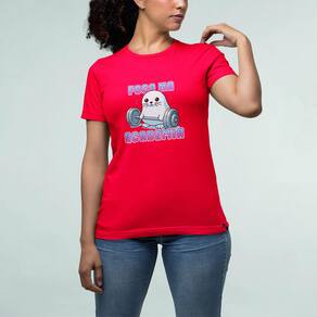 Camiseta Feminina Foca Na Academia Fitness Corrida Caminhar - Vermelho - P