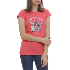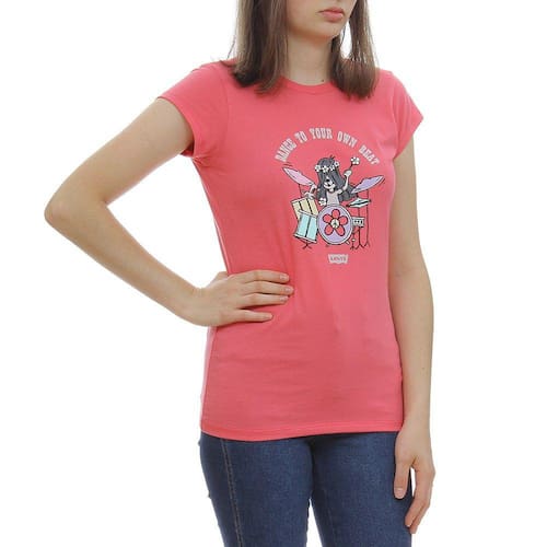 Camiseta infantil feminina Levis's fabricada em tecido 100% Algodão na cor Pink, possui mangas curtas, gola tradicional e estampa na parte frontal.