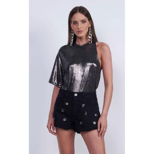 Blusa colcci feminina estampa em foil ``metalizada´´com a gola redonda