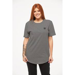 Camiseta Feminina Plus Size Longline Oversized Swag Manga Curta Wooks C1 - Grafite - G5
