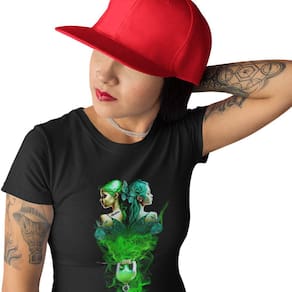 Camiseta Feminina Preta Drink Absinto Brisa Fadas Verdes