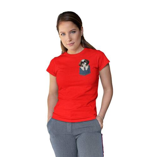 Camiseta Feminina Shih Tzu Cão de Bolso Mãe de Pet Dog Fofo - Vermelho - GG
