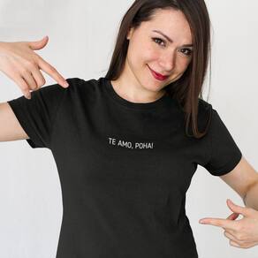 Camiseta Feminina Te Amo Poha Namorados Love Baby Look - Preto - M