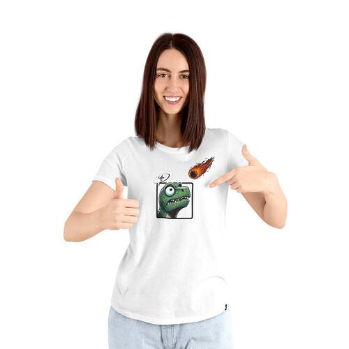 Camiseta Feminina TRex JoKenPô Cometa Tesoura Extinção Dino - Branco - GG