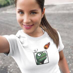 Com um T-Rex jogando JoKenPô (pedra, papel, tesoura), você traz um toque de diversão jurássica ao seu estilo.