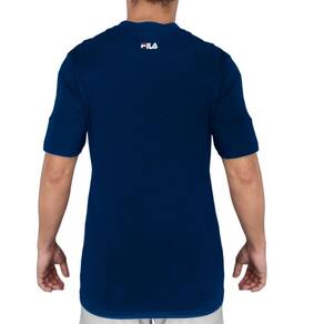 - Detalhamento: Camiseta gola redonda, mangas curtas, logo da marca aplicado na parte frontal na altura do busto no lado esquerdo e escrita FILA nas costas na altura do pescoço. Duas costuras na transversal na parte frontal adicionando mais estilo à peça;