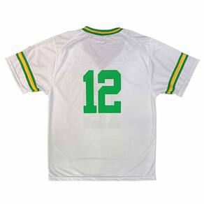 Malha esportiva 100% Poliéster com acabamento DRY. Gola com tecido retilínea. Nome do time e número do jogador estampados. Etiqueta tafetá de atleta na bainha. Feito no Brasil. Marca: M10.