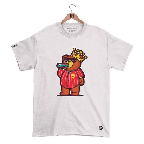 Camiseta Gola Redonda MáfiaClub URSO OSTENTANDO Streetwear fio 30.1 Penteado. - Branco - XG