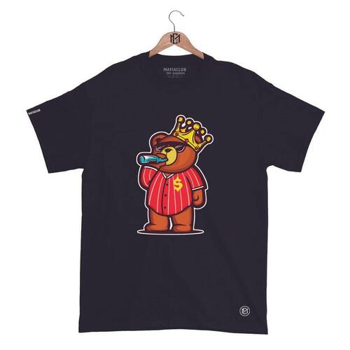 Camiseta Gola Redonda MáfiaClub URSO OSTENTANDO Streetwear fio 30.1 Penteado. - Preto - G