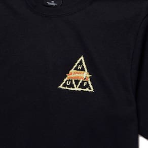 A Camiseta HUF X Street Fighter Blanka celebra o icônico jogo de 16 bits do final dos anos 80 e 90, confecionada em algodão de malha pesada oferece ótima qualidade, a estampa frente e costas traz o triãngulo triplo eletrizado referênciado ao um dos ataques do personagem.Detalhes: * Composição: 100% Algodão Pré Encolhida * Stret Fighter Estampado Na Manga Esquerda* Manga Curta * Gola Canelada* Estampa Frontal e Costas * ImportadoCuidados e Limpeza: * Lave a mão ou na máquina* Na secagem,seque ele sempre na sombra,evitar utilizar secadora de roupas* Não Passar Ferro Sobre a Estampa* Não usar alvejantes, e nenhum outro produto químico