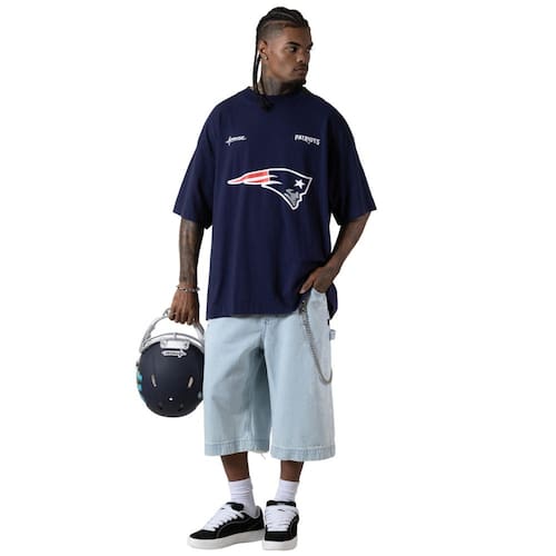Camiseta Huge Approve x NFL II Patriots Oversize Estilo e autenticidade em uma peça que une streetwear e esportividade. Com modelagem oversized, garante caimento solto e confortável, ideal para composições modernas. Produzida em algodão macio, traz estampa exclusiva da collab Approve x NFL, destacando o escudo do New England Patriots.