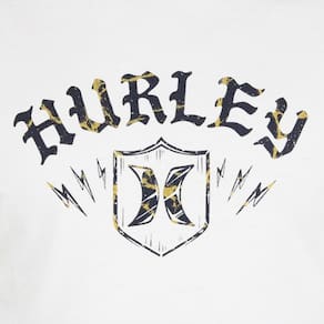 Camiseta Hurley feita em meia malha 30.1, gola rebatida, estampa localizada base d'agua e etiqueta clips ONE&ONLY na barra.