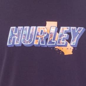 Camiseta Hurley feita em meia malha 30.1, gola rebatida, estampa localizada base d'agua e etiqueta clips ONE&ONLY na barra.