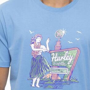 Camiseta Hurley silk, meia malha 30.1, gola rebatida, estampa localizada a base d'água e etiqueta clips na barra.
