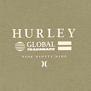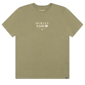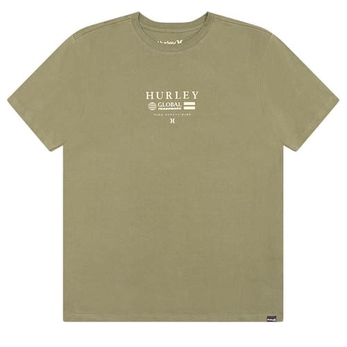 Camiseta Hurley feita em meia malha 30.1, gola rebatida, estampa localizada base d'agua e etiqueta clips ONE&ONLY na barra.