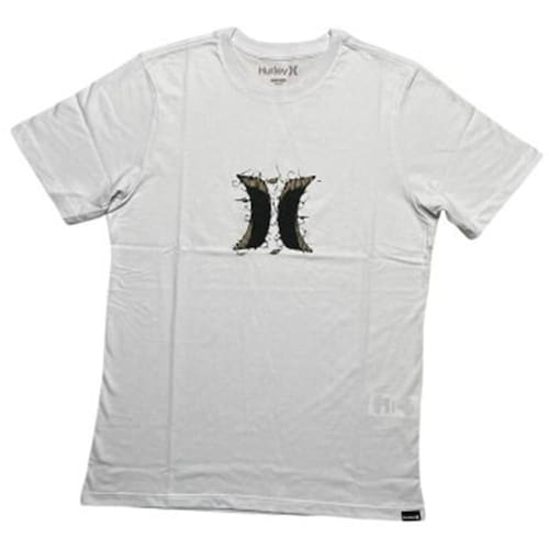 Camiseta Hurley feita em meia malha 30.1, gola rebatida, estampa localizada base d'agua e etiqueta clips ONE&ONLY na barra.