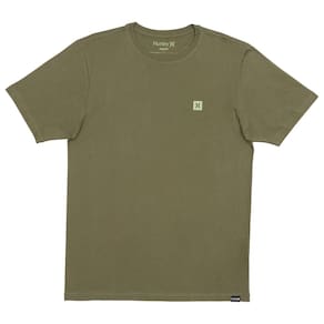 Camiseta Hurley feita em meia malha 30.1, gola rebatida, estampa localizada base d'agua e etiqueta clips ONE&ONLY na barra.