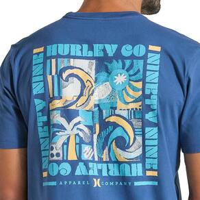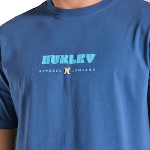Camiseta Hurley feita em meia malha 30.1, gola rebatida, estampa localizada base d'agua e etiqueta clips ONE&ONLY na barra.