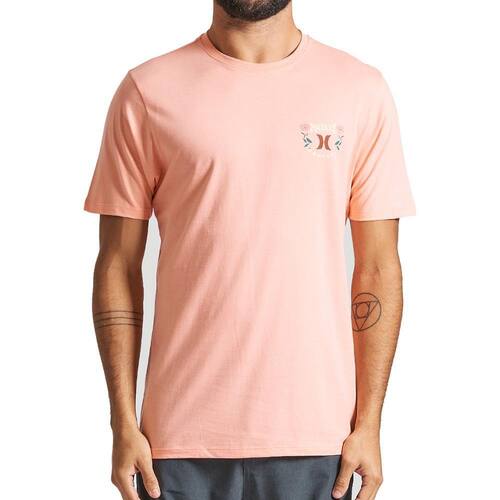 Camiseta Hurley silk, feita em meia malha 30.1, estampa localizada base d'água, modelagem regular e etiqueta clips na barra.