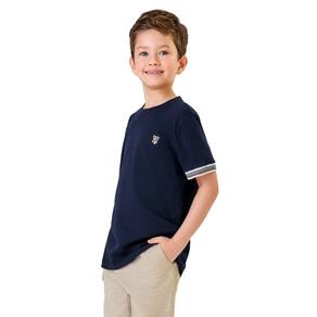 Ideal para quem busca um look moderno e confortável para os pequenos, essa camiseta infantil da Trick Nick é confeccionada em cotton leve, oferecendo toque suave à pele e liberdade de movimento. O tom azul marinho com detalhes em retilínea nas mangas e gola traz um charme especial, combinando com bermudas ou calças para diversas ocasiões.