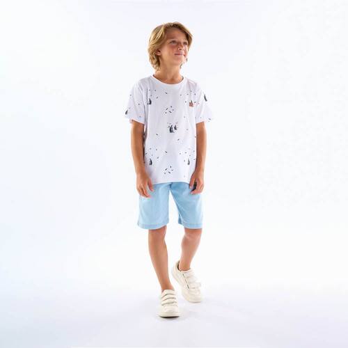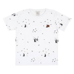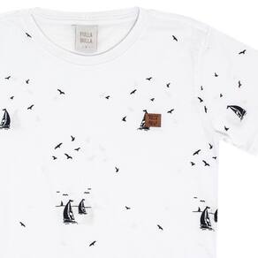 Básica e indispensável no guarda-roupa dos pequenos fashionistas. Camiseta em meia malha na cor branca com estampa de barquinhos, gola redonda com reforço, mangas curtas e etiqueta termocolante frontal. Combine com bermudas da coleção e crie looks incríveis para seu garotinho.