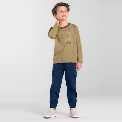 Camiseta infantil menino confeccionada em malha, leve e confortável. Apresenta estampa frontal localizada que traz um toque divertido ao visual. Com gola retilínea e mangas longas, é ideal para os dias mais frescos. A modelagem proporciona liberdade de movimento, perfeita para brincar e se divertir. Invista em peças que fazem a diferença no guarda-roupa dos pequenos, garantindo conforto e charme em todas as ocasiões.