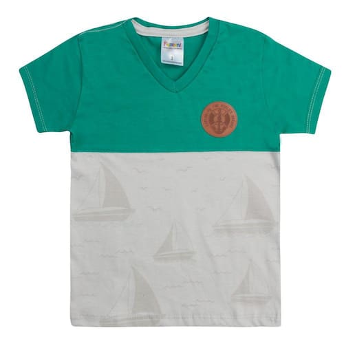 Camiseta Infantil Gola V-Confeccionada em Meia Malha 100% algodão-Gola em V-Duas Cores-EstampadaCuidados:-Não usar alvejante-Não lavar a seco-Lavar com cores semelhantes-Não usar em secadoraMedidas:Tamanho - Comprimento x Tórax1 - 39 cm x 54 cm2 - 40 cm x 56 cm3 - 41 cm x 58 cm Marca: Confeccões Fantoni