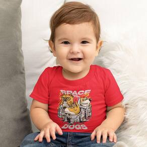 Camiseta Infantil Menino Menina Cachorros Espaço Astronautas - 8 - Vermelho