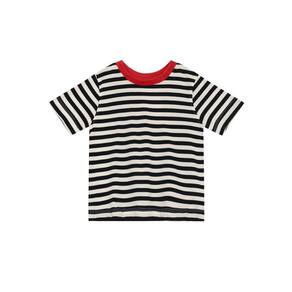 Camiseta infantil unissex da Brandili confeccionada em malha fio tinto com listras, que garante alta durabilidade e cores vibrantes mesmo após várias lavagens. O tecido possui biopolimento, proporcionando um toque macio e acabamento impecável. Com gola redonda e mangas curtas, é ideal para o dia a dia das crianças, unindo conforto, praticidade e estilo. Com modelagem pequena, sugerimos escolher dois tamanhos maiores que o seu tamanho padrão. Um item indispensável para completar o guarda-roupa dos pequenos com qualidade. Invista já!