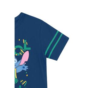 A camiseta infantil unissex da Brandili é perfeita para os pequenos que adoram estilo e conforto. Confeccionada em meia malha, apresenta uma divertida estampa do Stitch com temática brasileira, que traz um toque alegre ao visual. As mangas curtas listradas e a gola redonda garantem um caimento leve e descontraído. Ideal para o dia a dia, essa peça é versátil e combina facilmente com shorts ou calças. Deixe seu filho expressar sua personalidade com essa camiseta que une diversão e conforto em um só produto.
