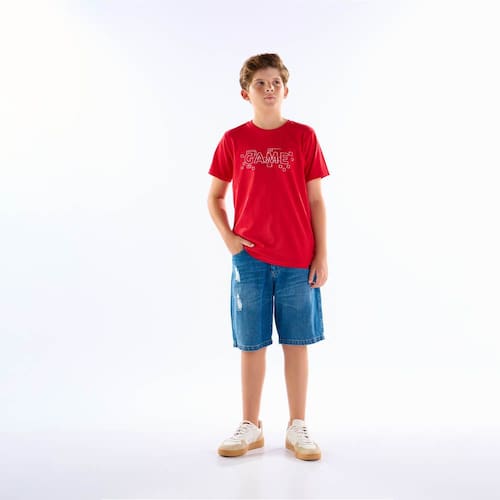 Para aqueles meninos modernos cheios de estilo e que curtem jogos, esta é a camiseta perfeita para eles! Confeccionada em tecido meia malha na cor vermelho, possuí manga longa, gola reforçada e estampa frontal gel em relevo com escrita "game". Ideal para curtir o dia de jogo com os primos!