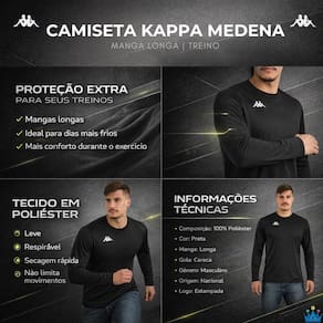 Desenvolvida para quem leva o treino a sério, a Camiseta Kappa Medena Manga Longa é a escolha certa para esportistas que buscam conforto, proteção e liberdade de movimentos durante a prática esportiva. Confeccionada em 100% poliéster, a peça oferece um toque leve e agradável ao corpo, auxiliando no conforto durante exercícios de média e alta intensidade. As mangas longas garantem proteção extra, sendo ideais para treinos em dias mais frios ou ambientes climatizados. Com design clean e esportivo, a camiseta possui visual totalmente preto, gola careca e logo Kappa estampada, trazendo um estilo moderno e versátil que combina facilmente com diferentes peças esportivas.