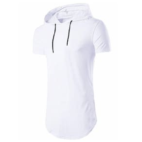 Camiseta Longline Manga Curta com Capuz Plus Size C14plus - Branco - G1