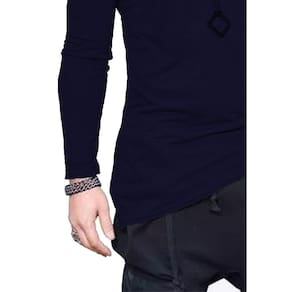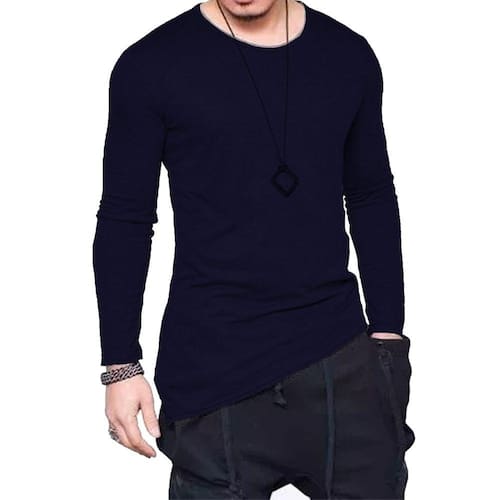 Camiseta Longline Oversized Corte Lateral Manga Longa - Azul Marinho - M