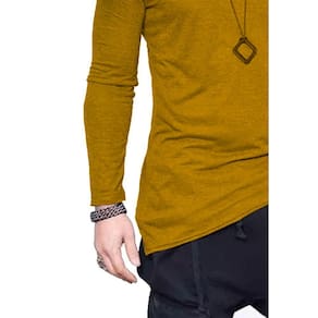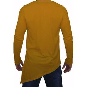 Camiseta Longline Oversized Corte Lateral Manga Longa - Amarelo Ouro - XG