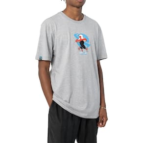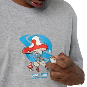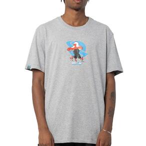 Camiseta Lost feita em meia malha penteada 30.1, modelagem regular, estampa reagente ao calor e etiquetas personalizadas.