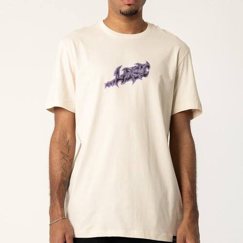 Camiseta Lost feita em meia malha 30.1, estampa frontal e costas e etiquetas personalizadas.