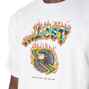 Camiseta Lost feita em meia malha 30.1, estampa frontal e etiquetas personalizadas.
