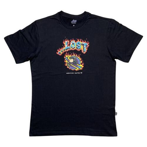 Camiseta Lost feita em meia malha 30.1, estampa frontal e etiquetas personalizadas.