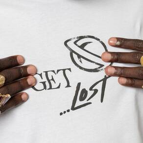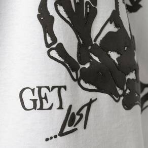 Camiseta Lost feita em meia malha 30.1, estampa frente e costas e etiquetas personalizadas.