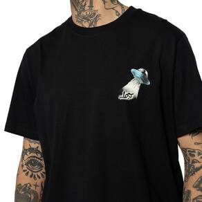 Camiseta Lost feita em meia malha pentaada 30.1, estampa no peito e costas e etiquetas personalizadas.