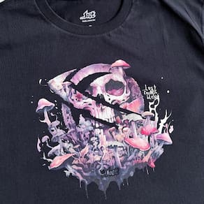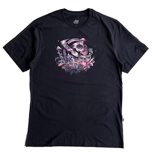Camiseta Lost feita em meia malha 30.1, estampa frontal e etiquetas personalizadas.
