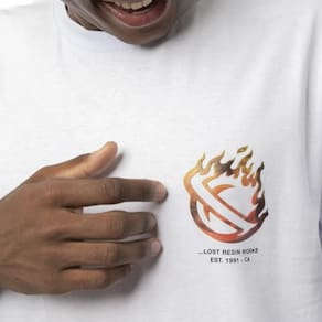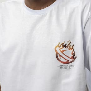 Camiseta Lost básica, meia malha 30.1, silk frontal, modelagem regular e etiquetas personalizadas.
