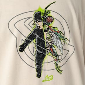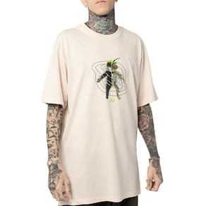 Camiseta Lost feita em meia malha penteada 30.1, estampa frontal e etiquetas personalizadas.